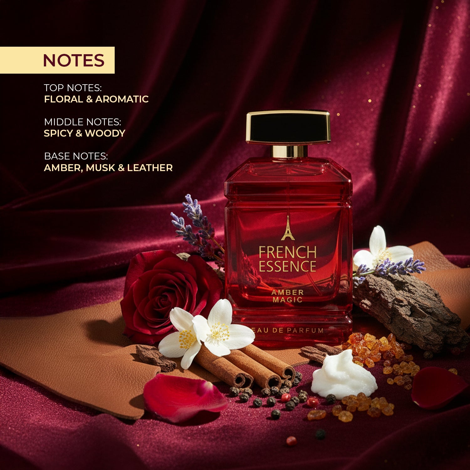 Immerse yourself in the enchanting aura of French Essence Amber Magic Luxury Unisex Perfume – 100ml, a fragrance that embodies elegance, sophistication, and sensuality.