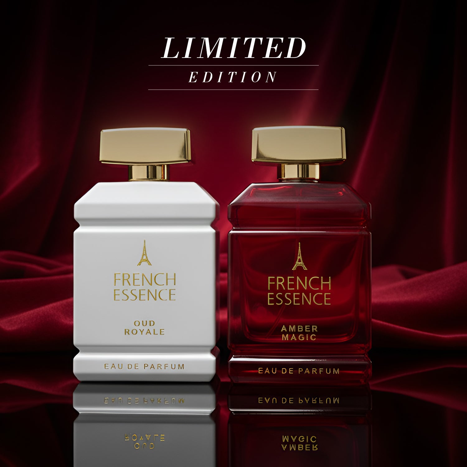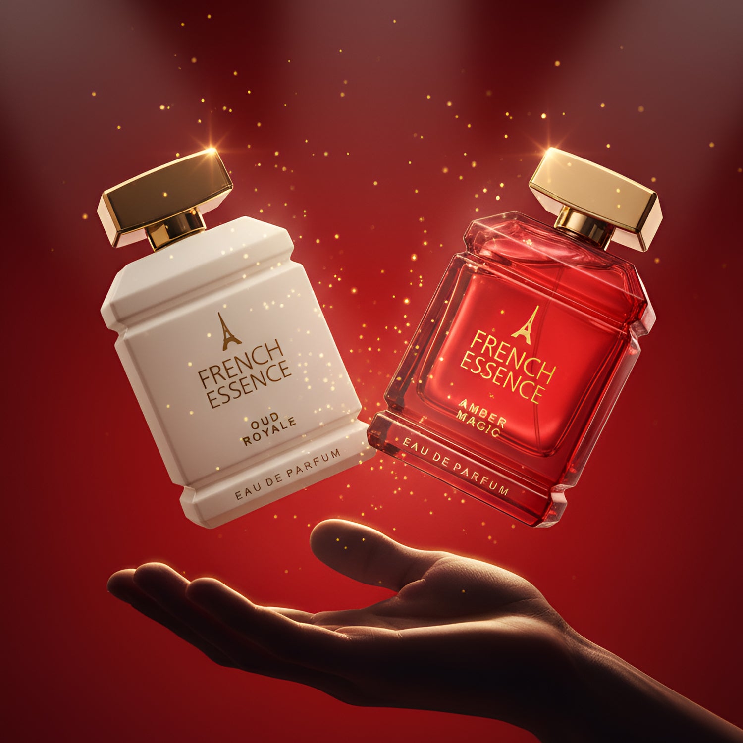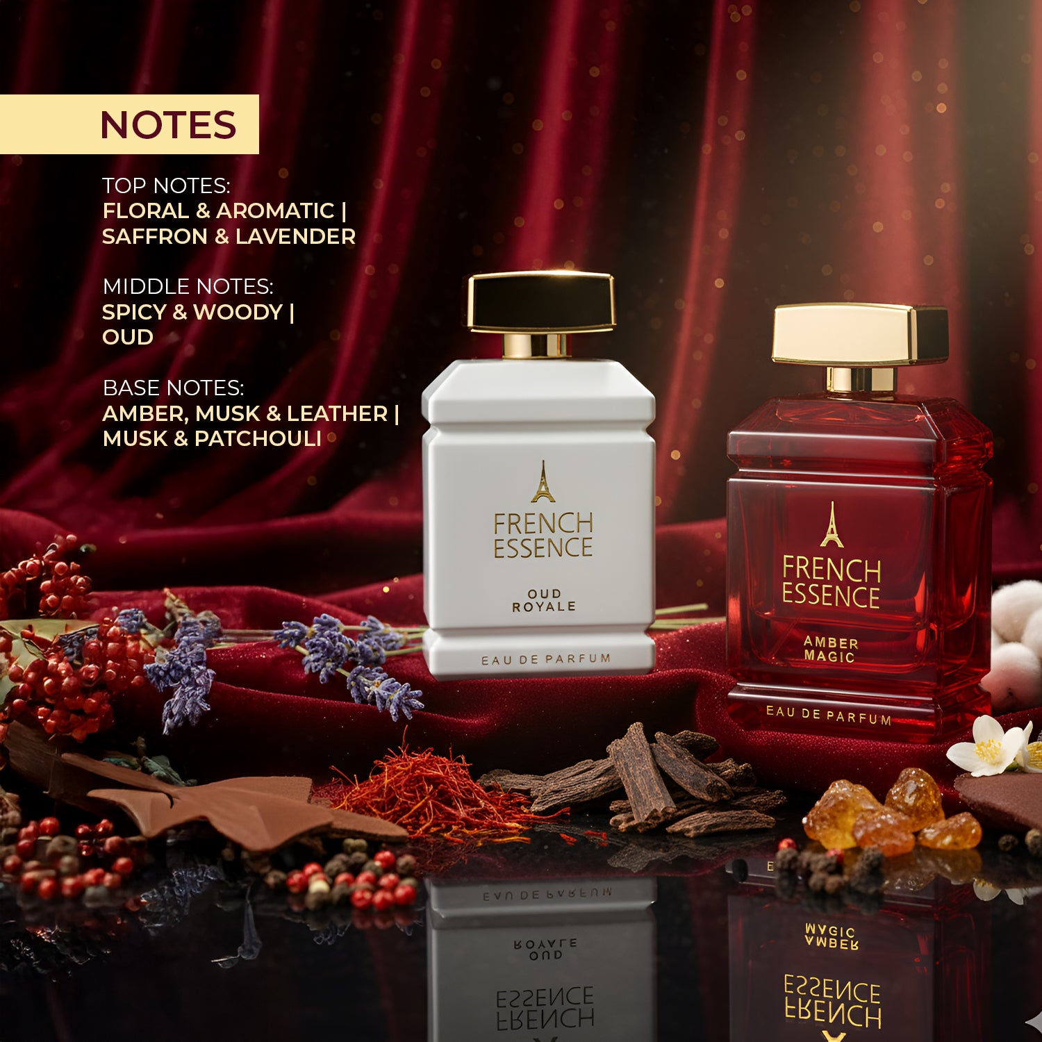 Celebrate luxury with the French Essence Oud Royale & Amber Magic Perfume Gift Pack (2 x 100ml)—a perfect pairing of sophistication and freshness.