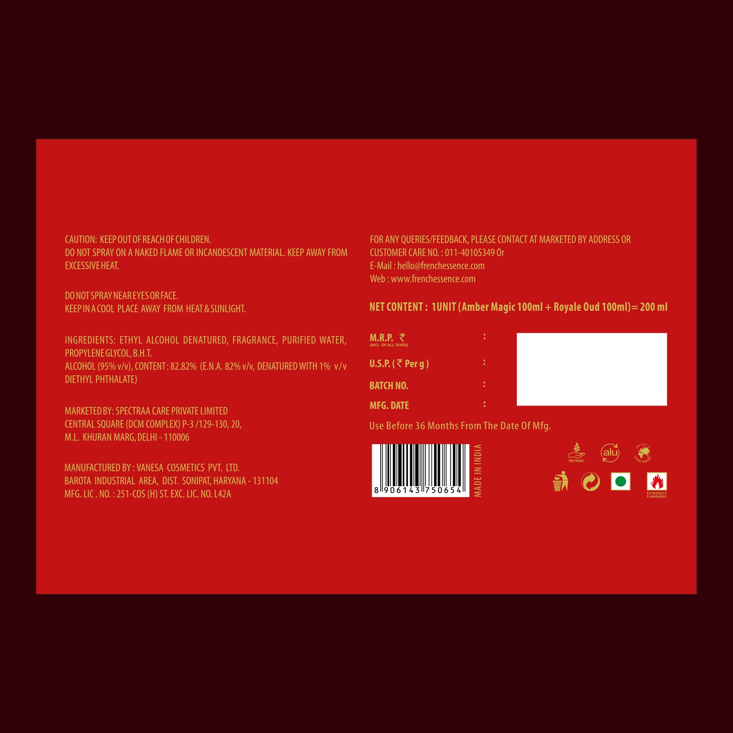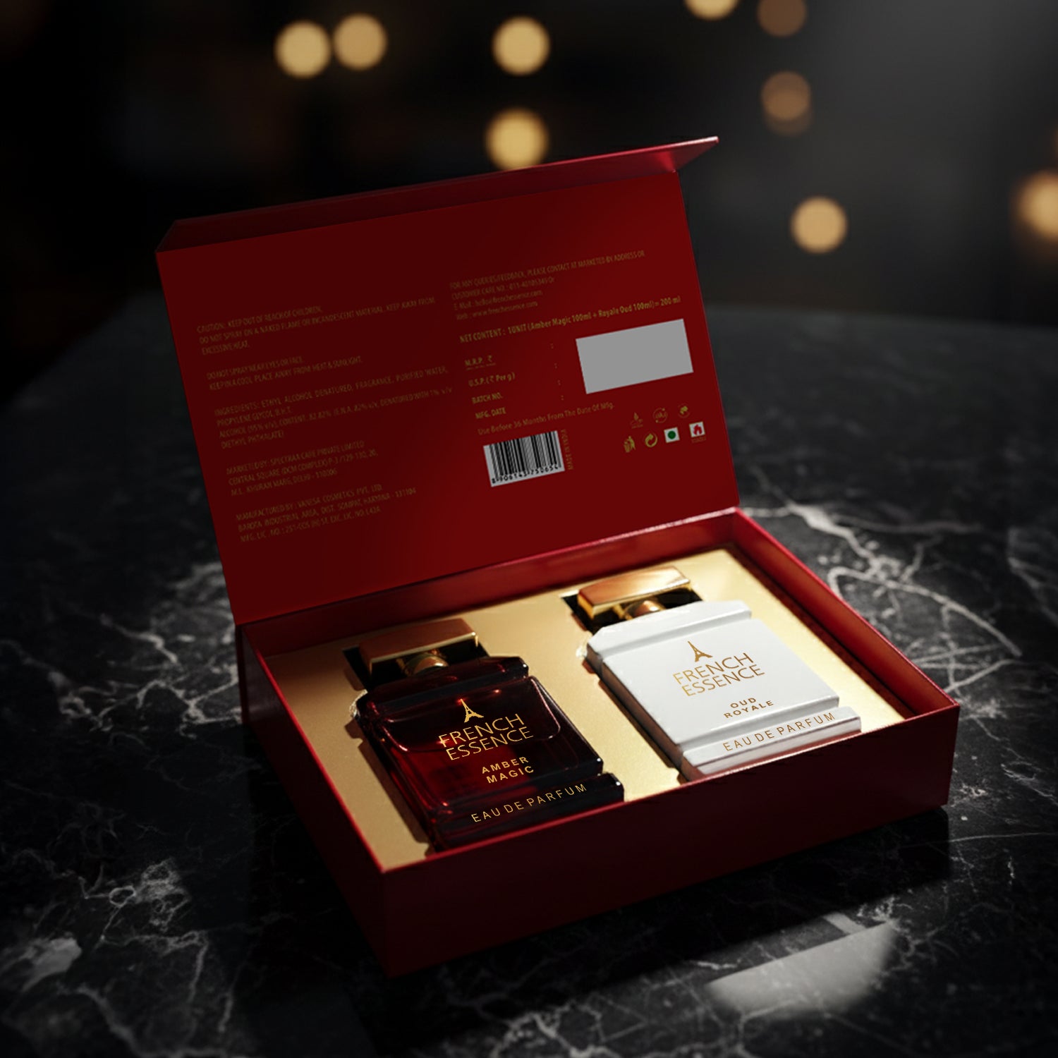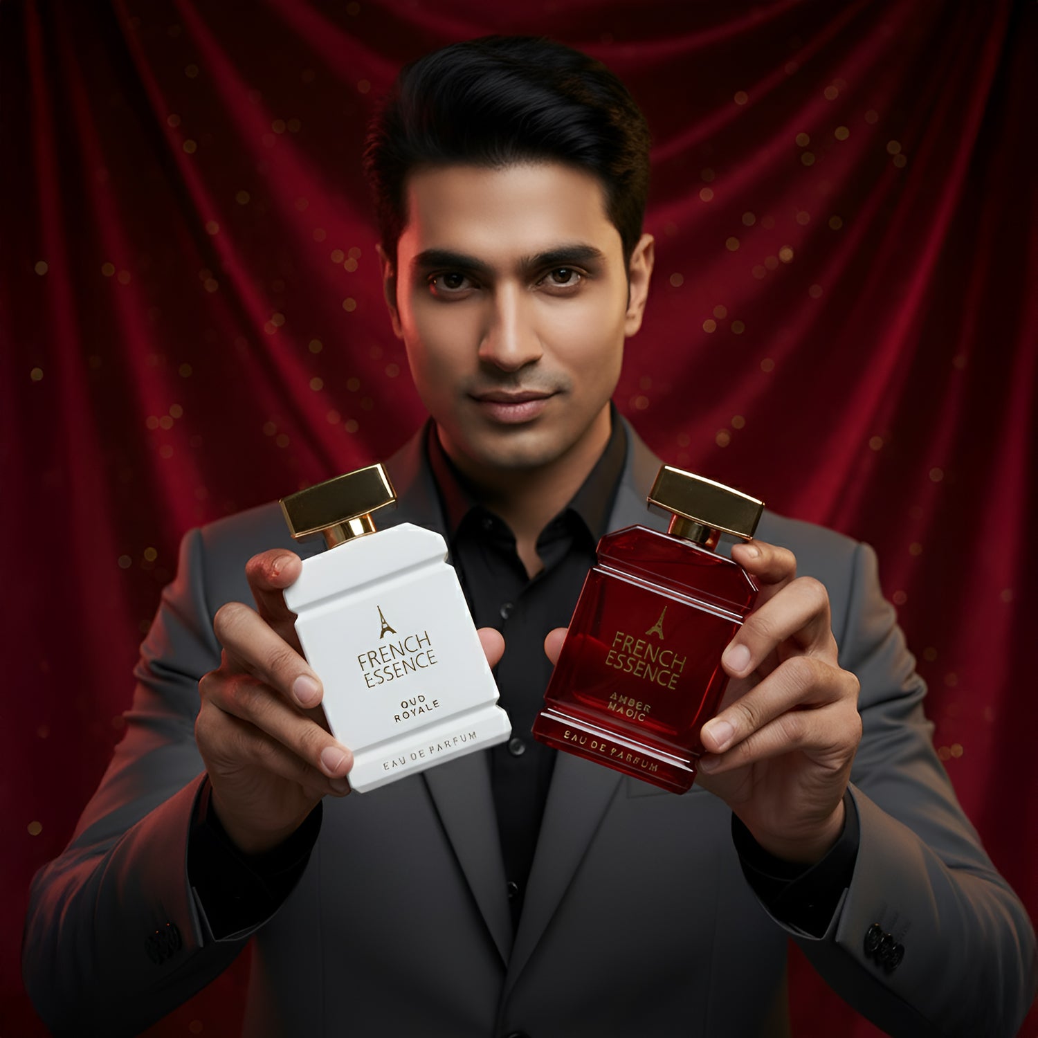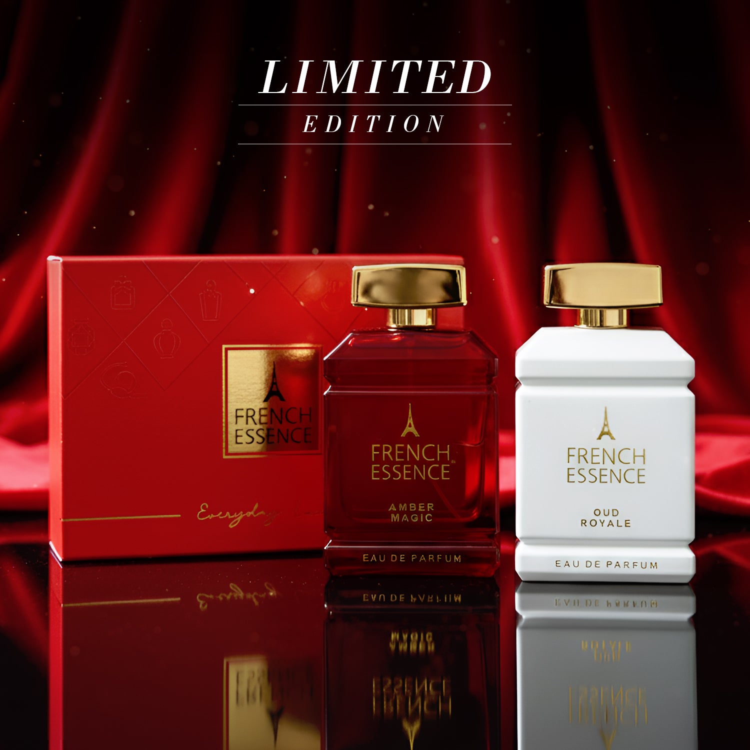 Celebrate luxury with the French Essence Oud Royale & Amber Magic Perfume Gift Pack (2 x 100ml)—a perfect pairing of sophistication and freshness.